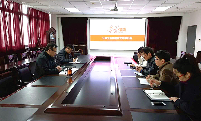 3月7日上午,公共卫生学院党委召开党支部书记会议,专题部署“学习强国”学习平台推广使用和建设工作,并集中学习学校人才引育工作推进会精神。