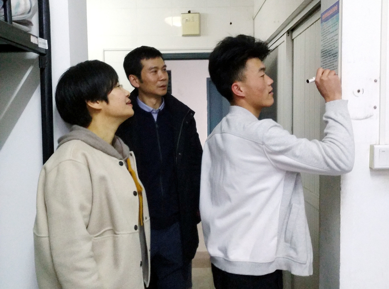 在学生宿舍,张莉莉询问了同学们的住宿情况,强调了宿舍安全的重要性。张志刚表示,宿舍作为大学生学习生活的重要场所,安全工作要放在首位,同学们要为营造舒适整洁的宿舍环境共同努力。各宿舍室长在安全卫生责任书上签字并将责任书在墙上张贴。