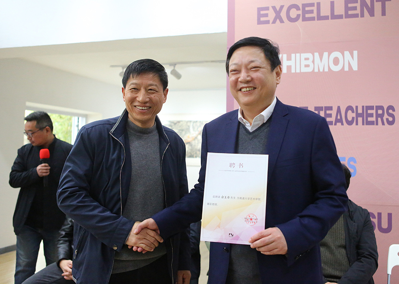 副校长樊小东为江苏省美术家协会常务副秘书长佘玉奇颁发兼职教授聘书。