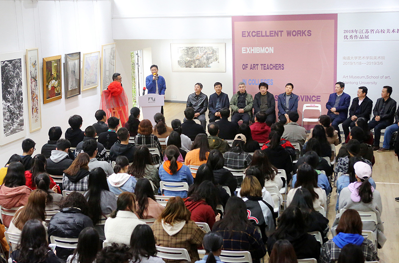 3月21日上午,江苏省高校美术教师优秀作品展南通巡展在我校开幕。副校长樊小东出席开幕式并宣布展览开幕。