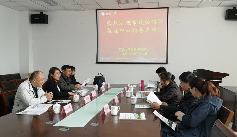 4月2日上午,南通市政协副秘书长朱明敏率南通市政协环境资源和城乡建设委员会政协委员一行来校调研分析测试中心。