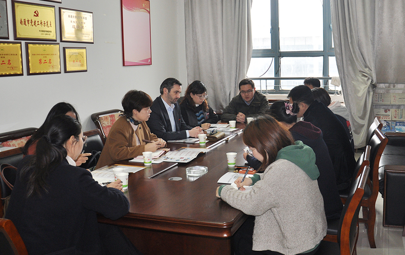 4月10日上午,苏通科技产业园综合管理办公室主管陈圆圆率园区部分外企负责人到机械工程学院洽谈合作事宜。学院党委副书记、副院长孙汉中接待了陈圆圆一行。