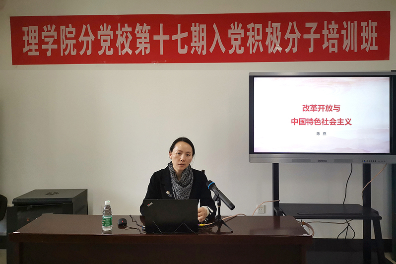 4月18日下午,理学院举办第十七期入党积极分子培训班专题讲座。党委组织部副部长陈燕应邀为培训班学员作“改革开放与中国特色社会主义”专题讲座。