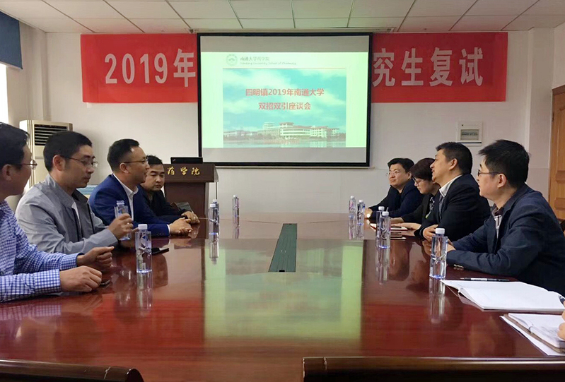 盐城四明镇与药学院洽谈“双招双引”工作。