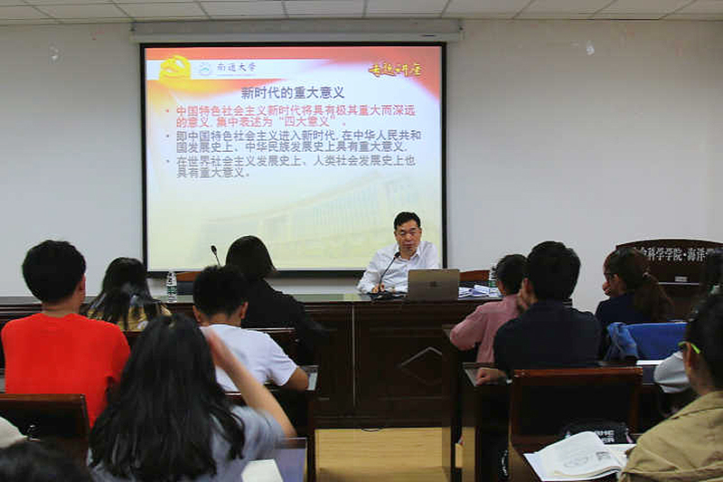 吉明明从“充分认识习近平新时代中国特色社会主义思想产生的时代背景”、“全面把握新思想的丰富内涵、实践要求和地位贡献”、“引领开启全面建设现代化强国新征程”等三个方面为同学们作了深入解读,帮助大家深刻领会习近平新时代中国特色社会主义思想的科学内涵、重大历史贡献。报告内容翔实有据、形象生动,受到入党积极分子的欢迎。