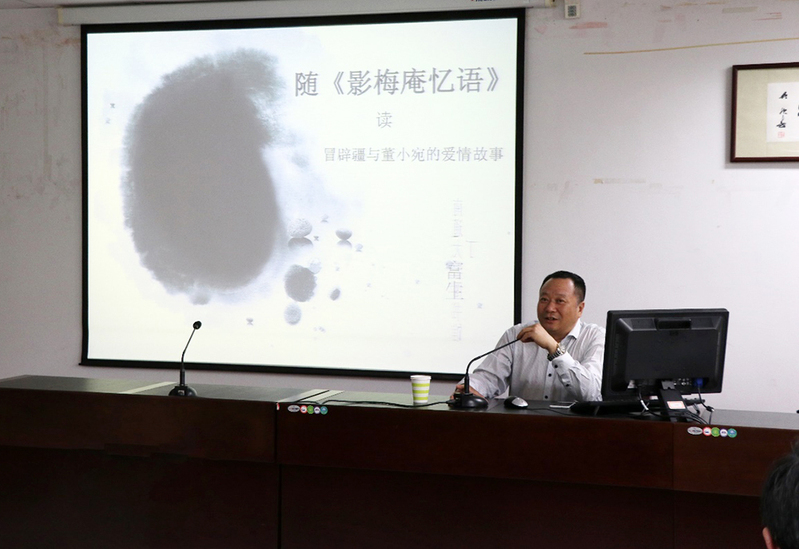 5月8日下午,第十四届文化读书月系列活动“敏慎人文讲坛”第二讲开讲。图书馆馆长丁富生教授为广大师生带来了题为“随《影梅庵忆语》读冒辟疆与董小宛的爱情故事”的主题报告。