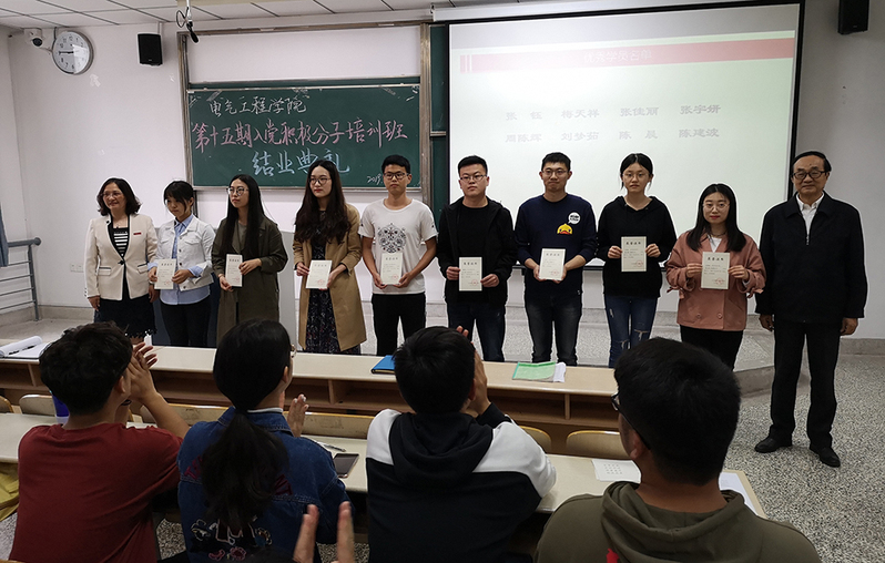 5月15日下午,电气工程学院举行第十五期入党积极分子培训班结业典礼,为学员代表颁发了结业证书及“优秀学员”证书。