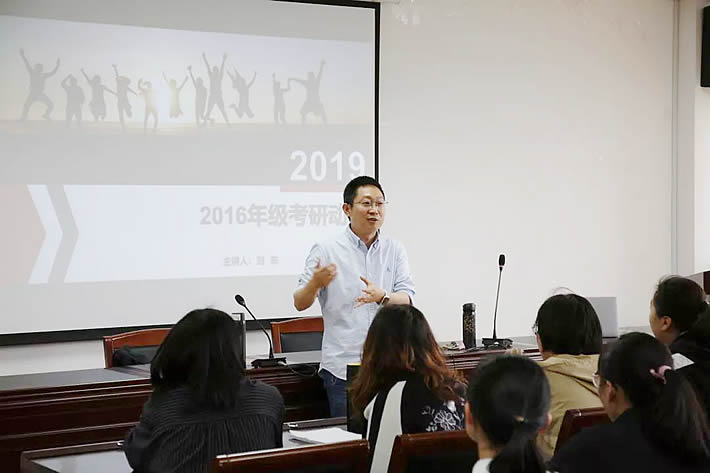 学院党委副书记副院长金玲分析了学院2019届毕业生考研数据,要求同学们审视端正自己的考研动机,不盲从、不跟风,既然选择考研就要做好拼搏的准备,并从考研报考学校和备战复习过程中的时间管理两方面给同学们提出了建议和意见。