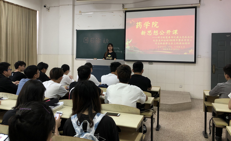 近日,药学院各学生团支部开展主题团日活动,学习习近平总书记在纪念五四运动100周年大会上的重要讲话精神、省委书记娄勤俭对研究生支教团来信批示精神以及校党委书记浦玉忠在我校纪念五四运动100周年暨共青团工作总结表彰大会上的讲话精神。