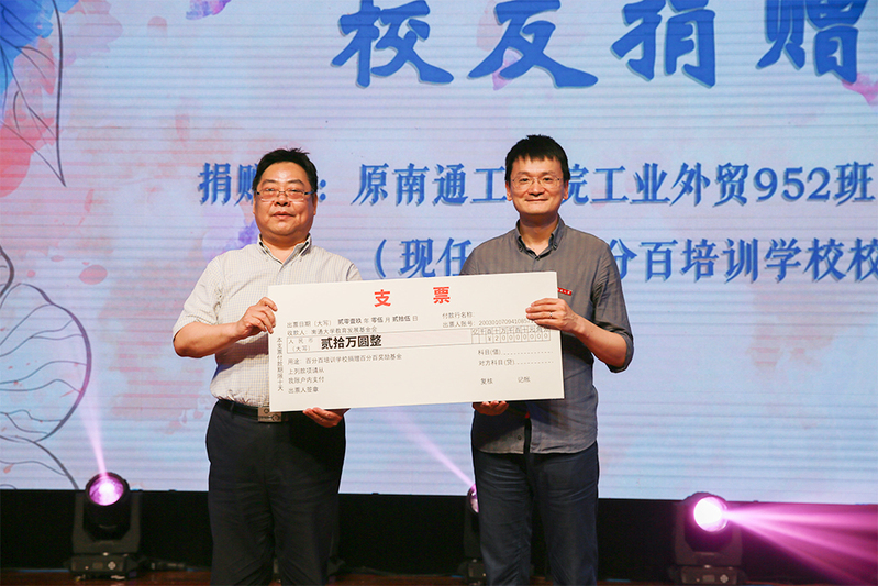 南通百分百培训学校校长、工贸专业95级校友朱蔚鹏为学院捐赠二十万元。