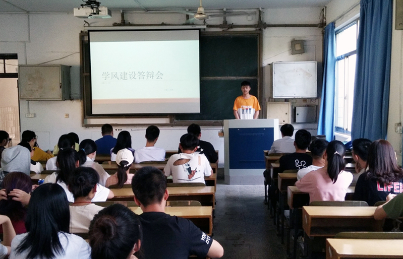 答辩班级通过PPT讲解,从班级学风建设现状入手,剖析现象,反思不足,并结合本班实际提出针对性措施。评委老师提出了相应改进意见。