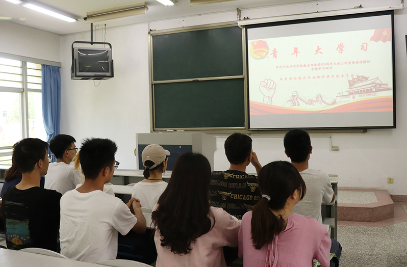 地理科学学院组织团员集中学习习近平总书记在纪念 “五四”运动100周年大会上的重要讲话。