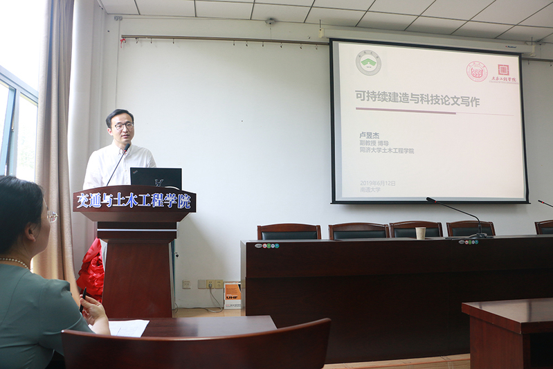 6月13日下午,同济大学博士生导师卢昱杰受邀来校作题为“可持续建造与科技论文写作”的学术报告。