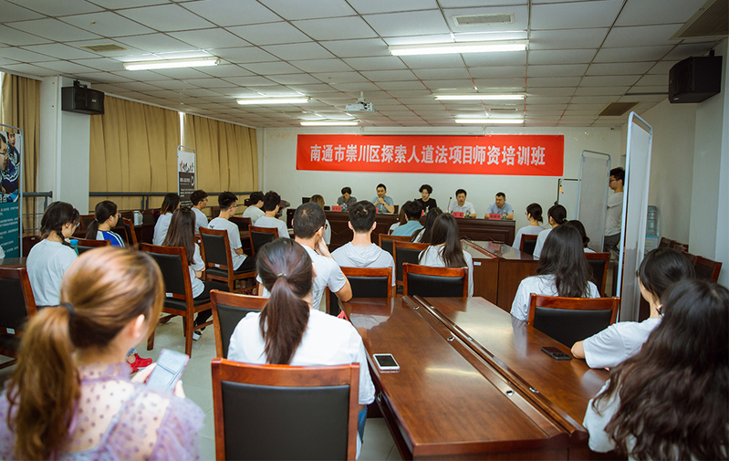 7月3日,南通市崇川区探索人道法师资培训班在我校开班。30名红十字学生志愿者参加培训。