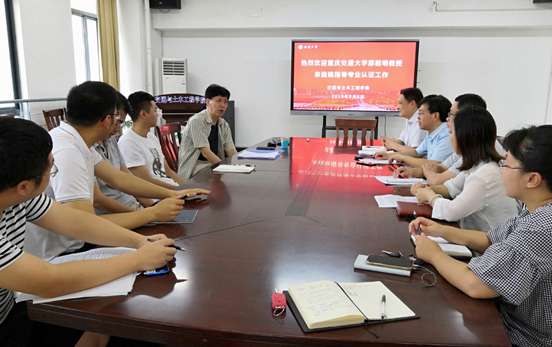 8月8日,教育部交通运输专业指导委员会委员、重庆交通大学邵毅明教授应邀来校对交通与土木工程学院专业认证工作做指导报告。