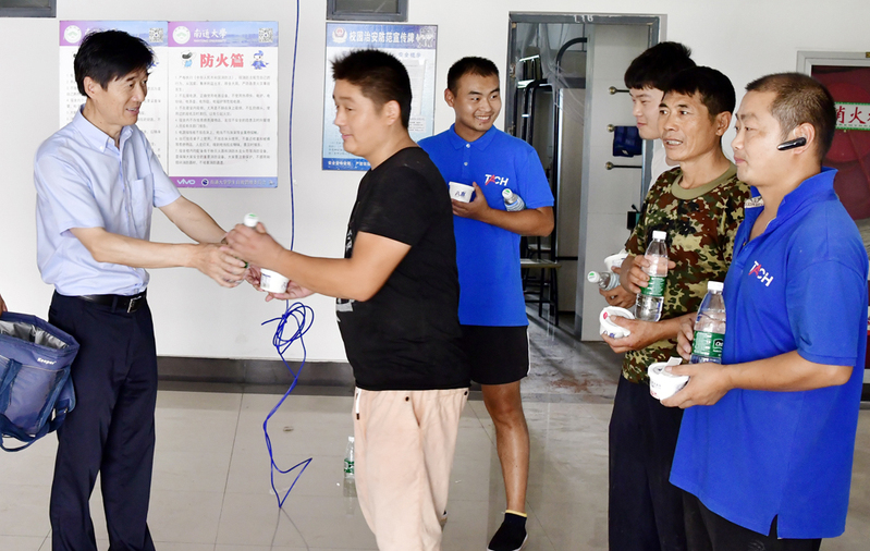 8月16日,现代教育技术中心主任管图华率领班子成员和技术专家看望一线施工人员和中心职工。