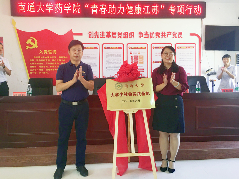 药学院党委副书记、副院长顾亚梅,响水镇党委副书记茅华共同为“南通大学大学生社会实践基地”揭牌。