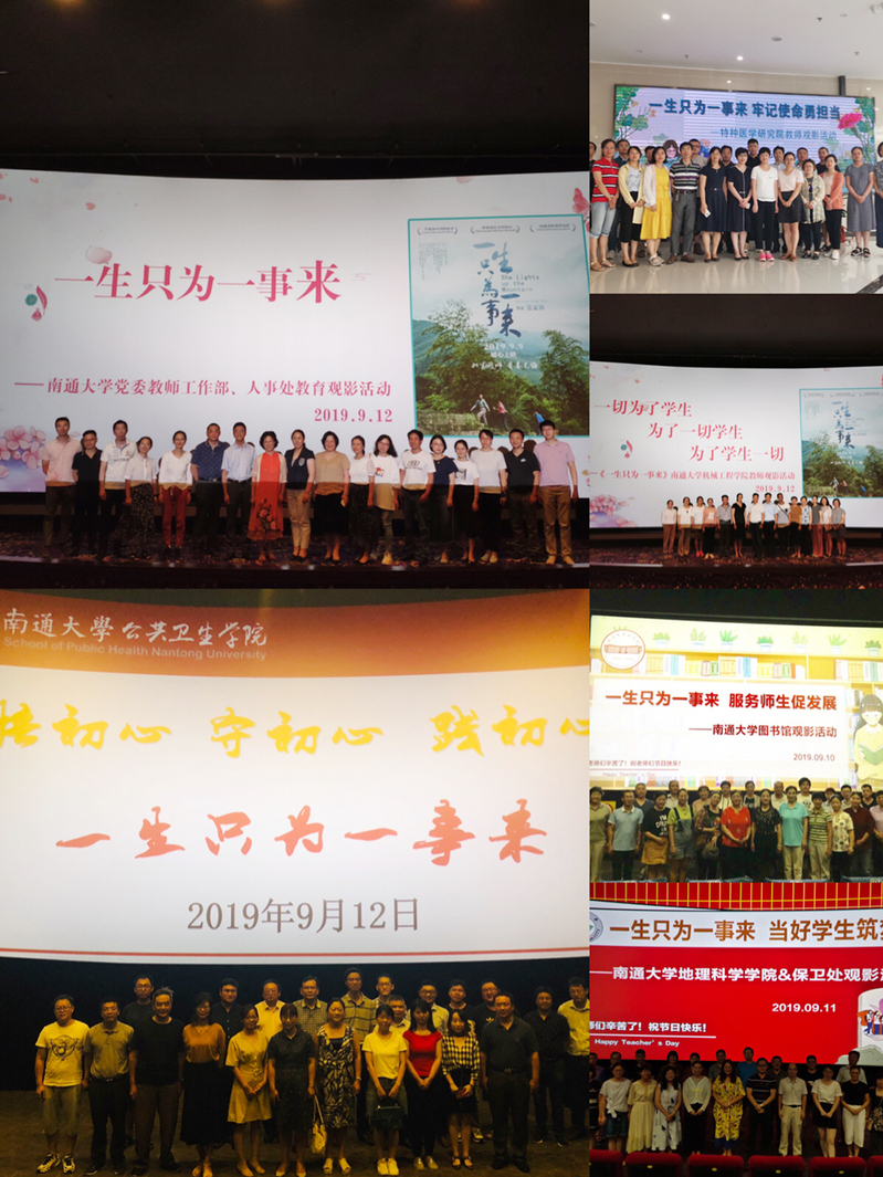 9月10日-12日,为庆祝第35个教师节,充分发挥教育系统先进师德典型的教育示范作用,学校各分党委、党总支和分工会组织教职工观看电影《一生只为一事来》,超过1300名教职工参加活动。