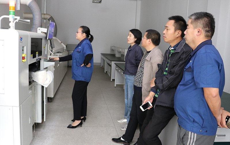 中心主任陆伟家向来宾介绍了目前电工电子实训教学设备情况及开展的教学模块运行情况,并陪同参观了SMT、PCB制作工艺、微电子制造工艺等实训区。