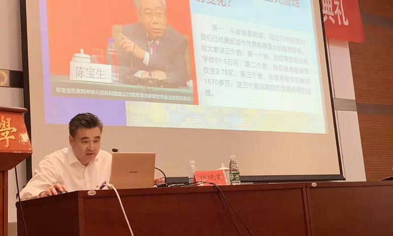 10月9日下午,南通市委教育工委副书记杨晓岗应邀为我校2019定向师范生作题为《守教育报国初心 担立德树人使命 为新时代教育之乡贡献青春、智慧与力量》的报告。
