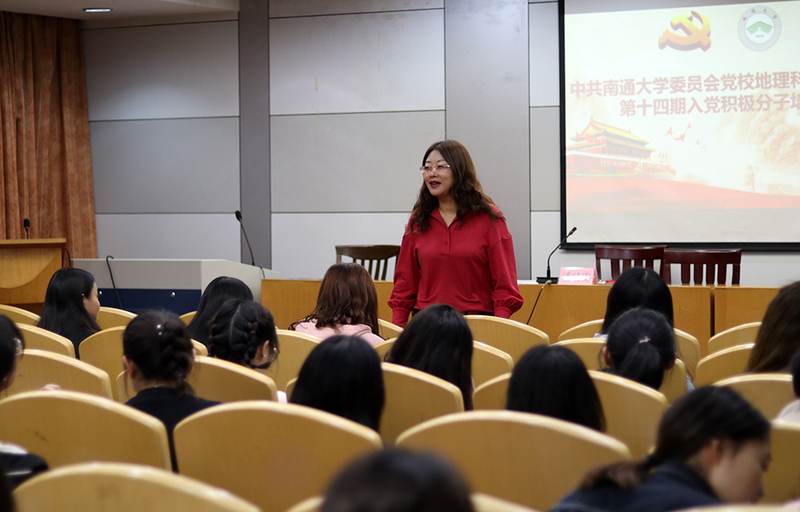 10月22日,地理科学学院党委书记潘晴雯为学院第14期入党积极分子培训班上《端正入党动机 争取早日入党》的专题党课。