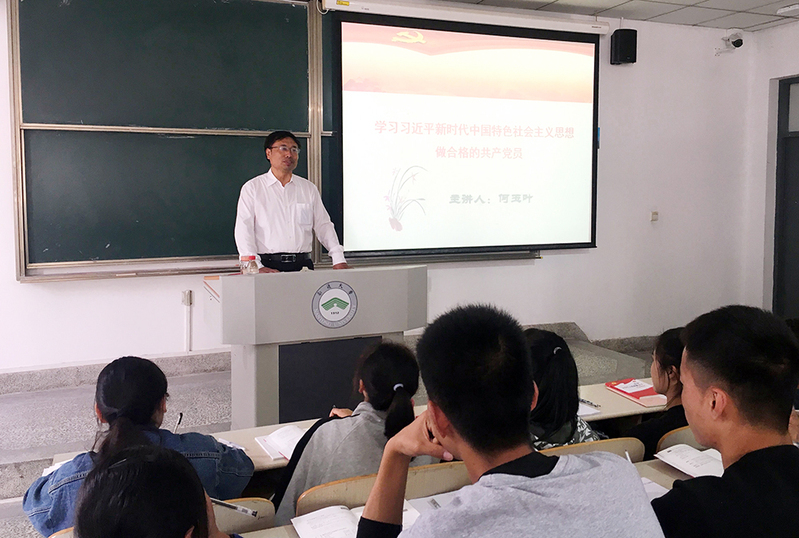 开班仪式后,审计处处长何玉叶应邀以“学习习近平新时代中国特色社会主义思想 做合格的共产党员”为题为入党积极分子上党课。他深入浅出的向同学们阐述了习近平新时代中国特色社会主义思想产生的历史背景、核心内容、重大意义。他希望同学们对习近平新时代中国特色社会主义思想要系统学、全面学、读原著、学原文、悟原理,做到真信、真学、真懂、真用,理论联系实际,认清历史机遇,勇担时代重任,在实现中国梦的生动实践中放飞青春梦想。