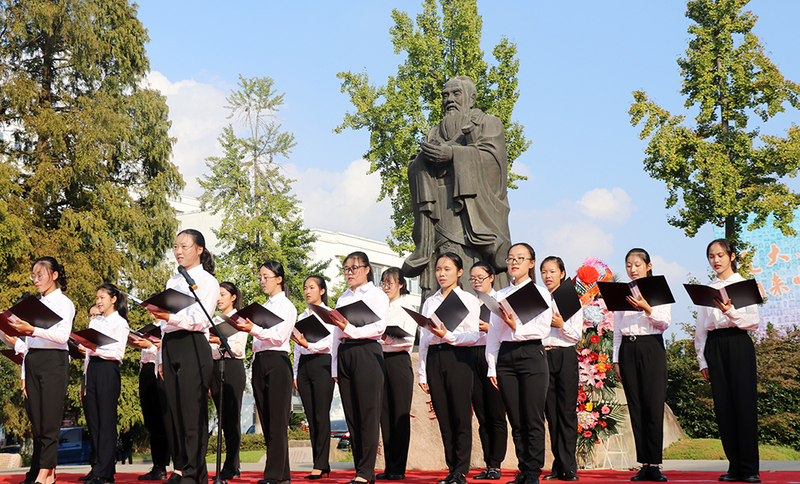为纪念孔子诞辰2570周年,10月23日下午,教育科学学院2019级全体师范生在钟秀校区的孔子园里举行了庄严隆重的祭孔仪式。