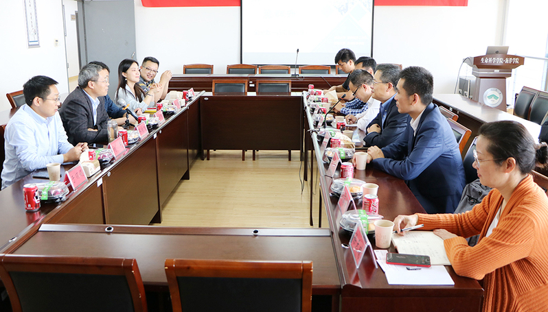 金玲代表学院向冀总裁一行的到来表示欢迎,并从学院办学历史、办学规模等方面介绍了学院的基本情况;邓自发和刘东分别从专业建设和人才培养、科学研究和产研融合两个方面做了具体的介绍。