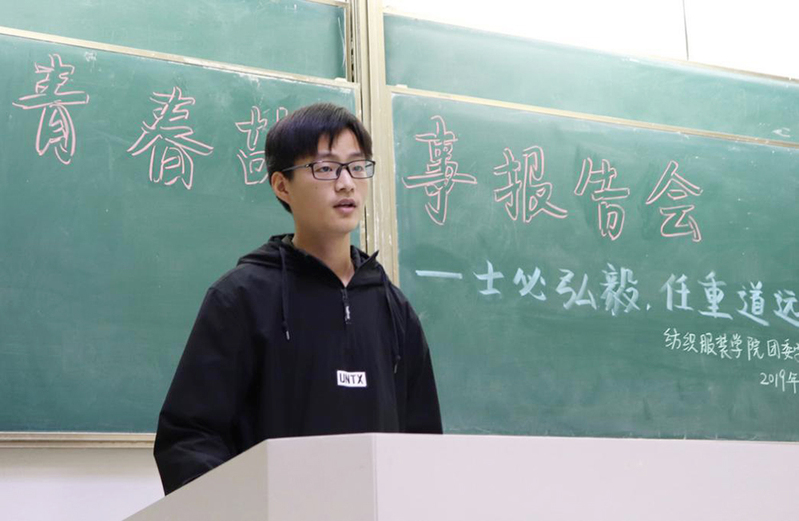 10月28日,纺织服装学院举办“分享青春故事 弘扬榜样力量 共话青春成长——我的青春故事报告会”。