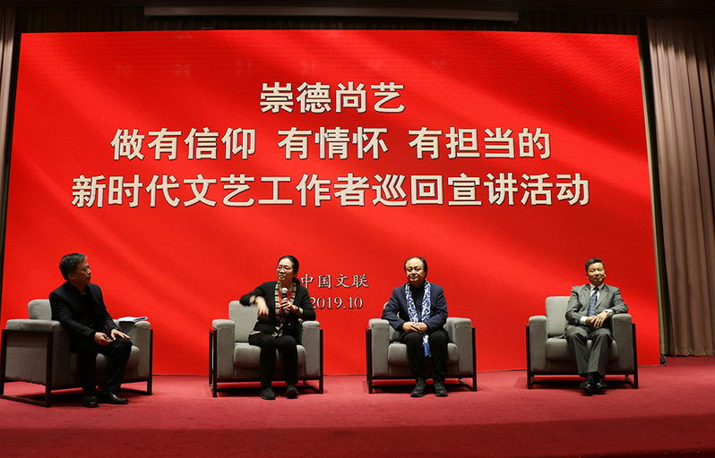据了解,“崇德尚艺 做有信仰有情怀有担当的新时代文艺工作者巡回宣讲活动”于2018年8月在北京正式启动,是中国文联展现文艺界正风正气,树立文艺界良好形象,团结凝聚更多从业者、爱好者立志做有信仰、有情怀、有担当的新时代文艺工作者的一项重要举措。