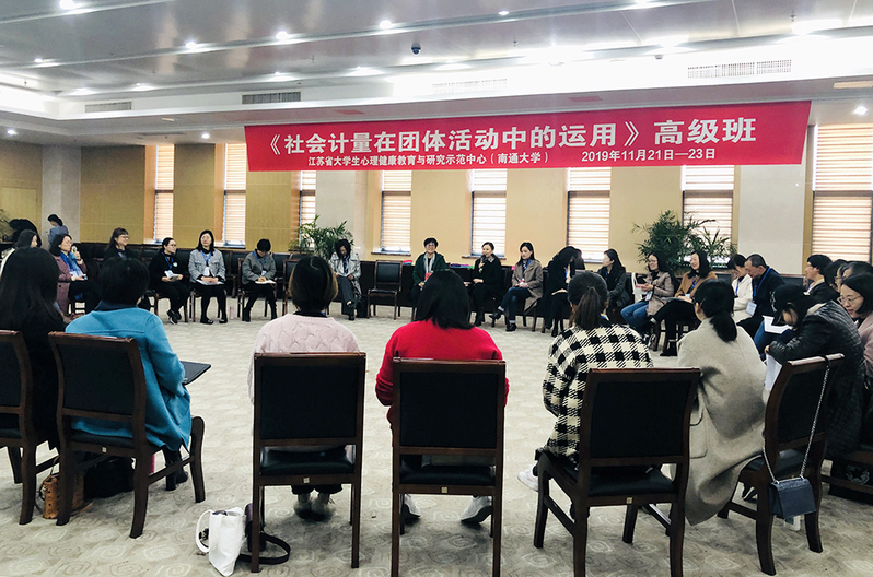 11月21日,江苏省大学生心理健康教育示范项目《社会计量在团体活动中的运用》高级班在我校开班。教育部高校大学生心理健康教育专家指导委员会副秘书长、南京大学心理学系博士生导师桑志芹教授担任主讲。