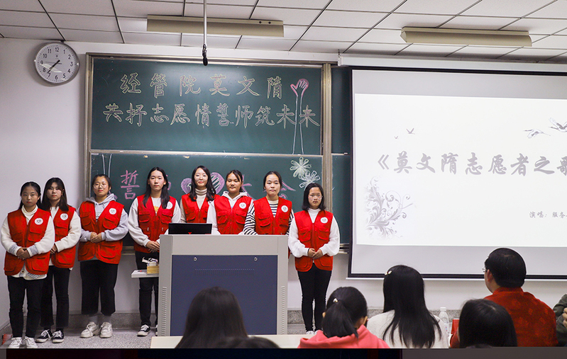 经济与管理学院“莫文隋”致力于组织学院学生参与社会志愿服务活动,弘扬“莫文隋”志愿者精神。多年来,学院“莫文隋”组织开展了言慈计划、红传行动、暖冬计划、瑞慈护理院活动、闸桥社区志愿活动、十二五志愿广场日活动、海港新村志愿活动、曹公祠社区活动、公益徒步行等一系列特色活动。本次会议旨在进一步弘扬“莫文隋”精神,帮助大学生树立正确的人生观和价值观,引导大学生积极投身志愿活动,以高尚的道德追求为社会奉献自己的一份力量。