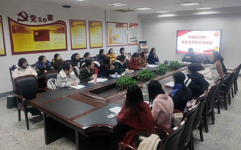 12月2日晚,外国语学院举行预备党员转正答辩会。