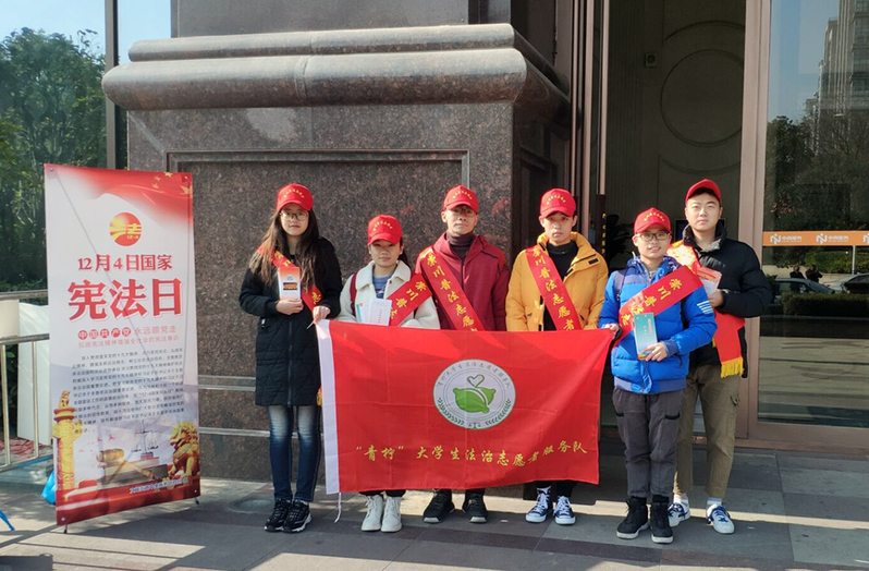 12月3日,在第六个国家宪法日即将到来之际,经济与管理学院“青柠”法治志愿者服务队的6名志愿者携手崇川区文峰街道,在中央商务区开展“12•4宪法日”法治宣传活动。