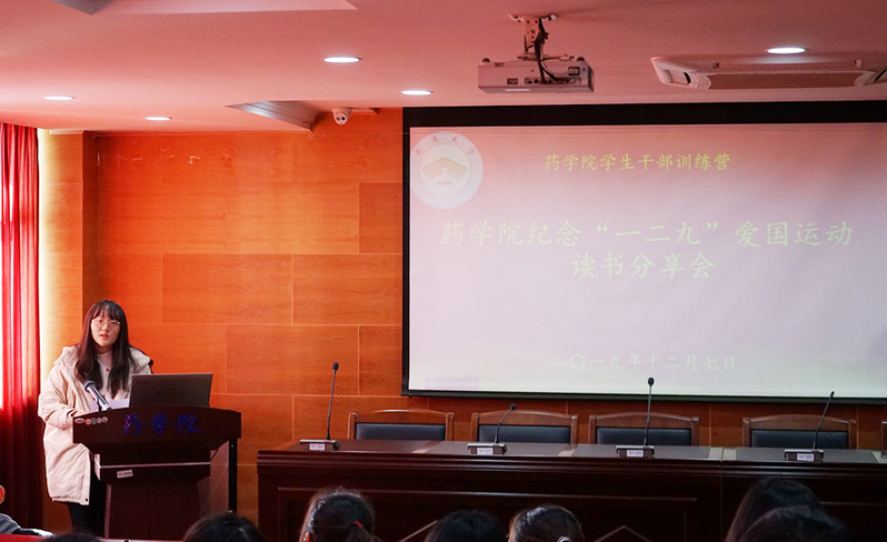 12月8日,药学院举行纪念“一二•九”爱国运动读书分享会,学院第一期学生干部训练营全体学员参加活动。