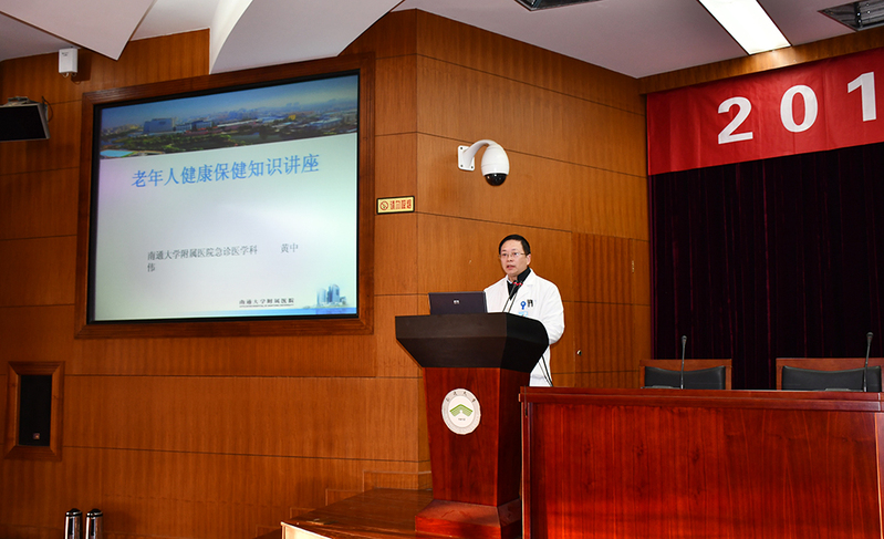 12月11日下午,离退处举办老年人健康保健知识讲座,邀请通大附院急诊医学科主任、南通大学急诊及全科医学教研室主任、硕士生导师黄中伟教授做讲座。