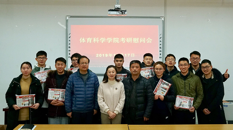 12月17日下午,体育科学学院召开2019届毕业生考研慰问会,给考研学子们发放助考礼包,勉励同学们坚定考研信心,全力以赴,取得优异成绩,实现自身理想。