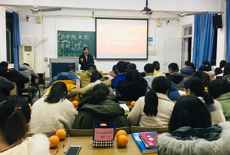 12月17日,药学院召开2020届考研学生慰问暨考前动员大会,给考研学子发放“祝你‘橙’功”考研助力包,勉励同学坚定信念、调整好状态,增强考研备考的信心和决心,迎接最后的冲刺。