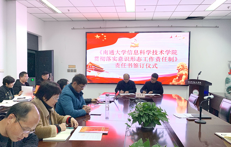 会上,学院各教职工党支部书记、各系室负责人分别签订《南通大学信息科学技术学院贯彻落实意识形态工作责任书》。