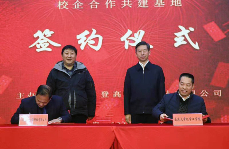 12月28日,我校化学化工学院与江苏登高环保科技有限公司共建校企合作基地。南通市生态环境局副局长陆汉勇、如皋市人大主任吴道健、化学化工学院党委副书记兼副院长张爵宁、江苏登高环保科技有限公司董事长邓旭等出席签约仪式,双方举行了“校企共建合作基地”授牌仪式,共同签署了“大学生就业实习合作协议”。