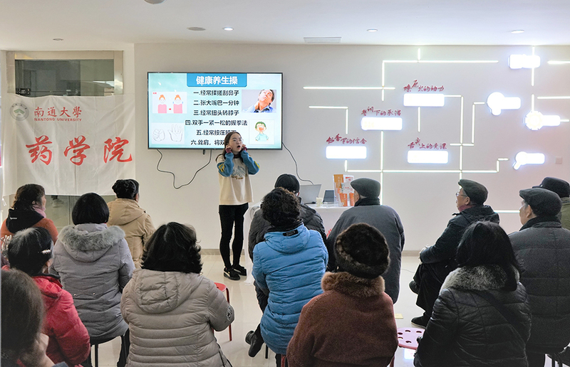 1月13日,药学院“精准用药·铸魂育人”健康中国志愿服务实践团赴南通市学田街道紫荆花社区开展志愿服务活动。