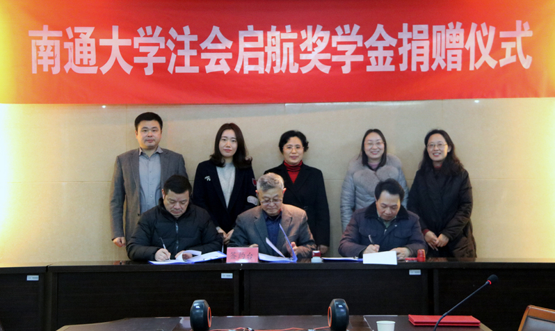 1月16日下午,我校举行“注会启航奖学金”捐赠仪式。社会资源处处长岳泳与南通市注册会计师行业委员会书记、南通市财政局副调研员许向前,南通市注册会计师协会会长、南通万隆会计师事务所所长方建华签署了捐赠协议。财务处处长杨毅向捐赠单位颁发了捐赠证书。经济与管理学院党委书记陶锋参加捐赠仪式。