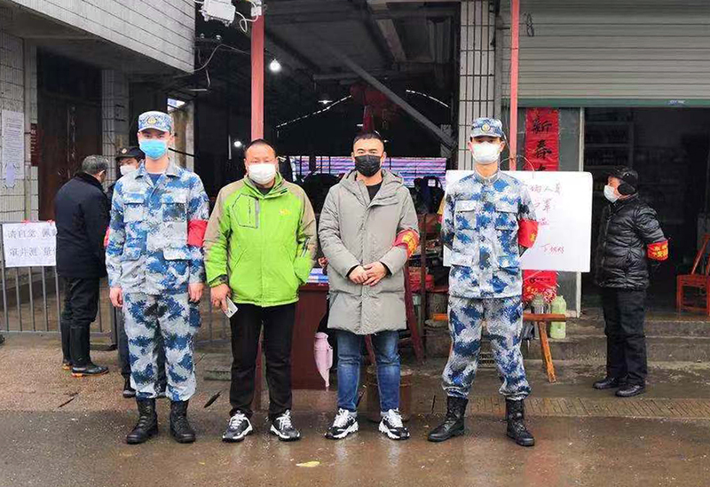 退役军人、药学182班田云同学主动申请参加新冠肺炎病毒防控志愿服务活动。(左一)