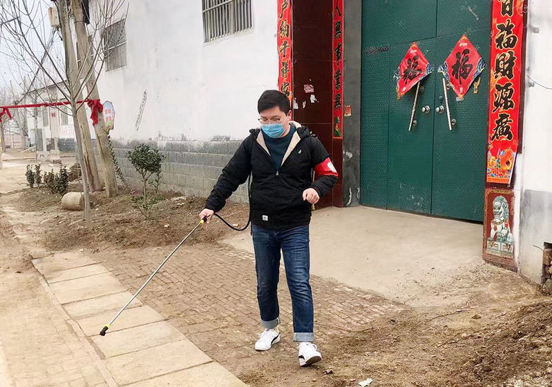 张夫超是研18生物的副班长,家住山东省聊城市冠县范寨镇芦贯庄村。看到村里长辈们为疫情防疫工作奔波忙碌,他意识到了防疫工作的重要性,作为一名入党积极分子,他说服了自己的父母后向村支书提出了参“战”申请。他每日都会坚守在村主干道,协助村委会干部做好过往车辆以及人员的排查与登记,协助做好主要干道的消毒工作,并利用自己的专业知识向村民们普及防疫知识,消除对疫情的恐惧。参与防疫工作期间,大家众志成城抗击疫情深深触动着他的心。张夫超说,自己每天的工作内容虽然比较简单,但特殊时期需要特别细心和有耐心,疫情虽猛,但相信只要大家同心协力,抗疫一定胜利。