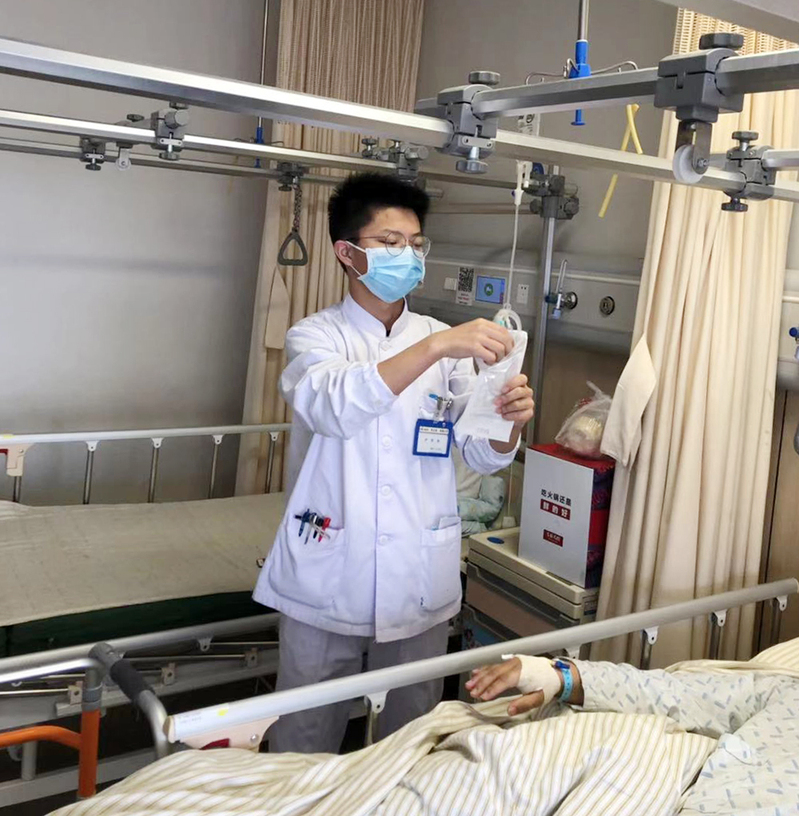 护理164班的李正邦从正月初一到初十都没有休息,一直在江苏省人民医院骨科二病区,为病人们带去及时的治疗和悉心的照顾。他说,“我相信在国家的领导下,我们一定能共度难关,创造更美好的生活。”