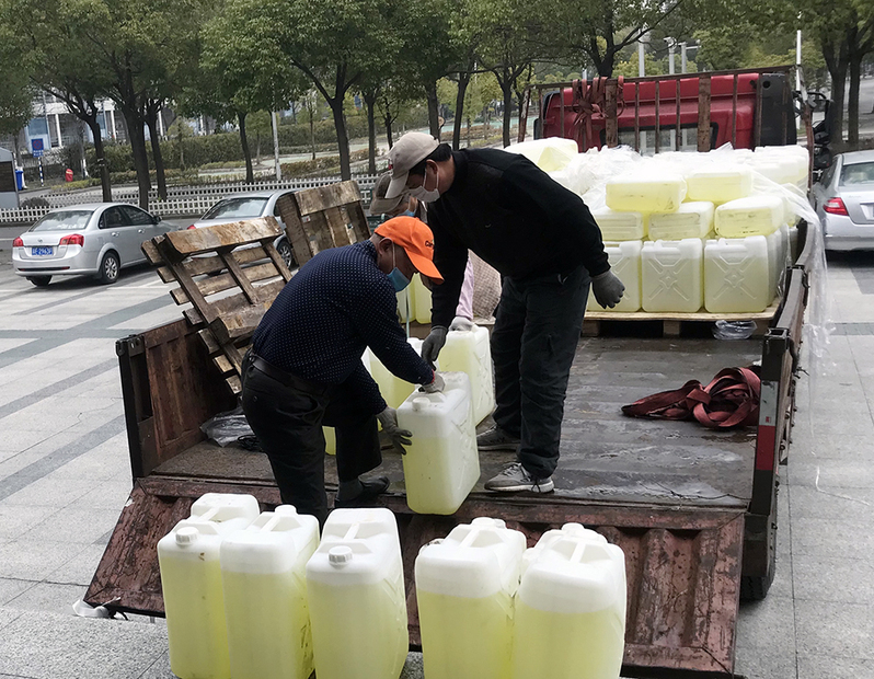 2月25日上午,江苏准信自动化科技有限公司向南通大学伸出援助之手,为我校捐赠84消毒原液5吨。