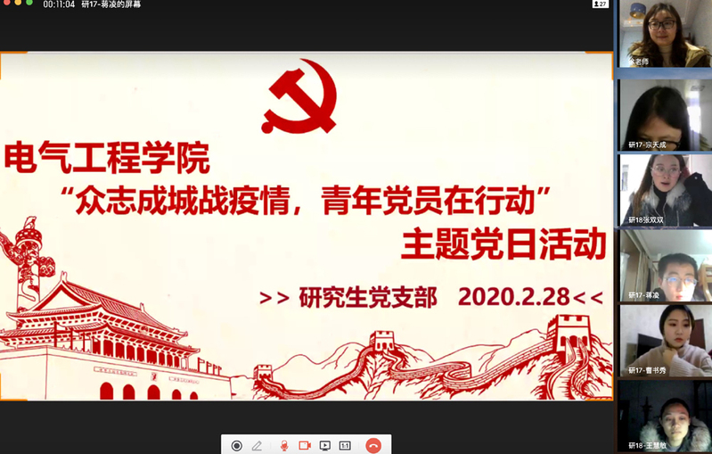 2月28日下午,电气工程学院研究生党支部通过QQ视频,举办“众志成城战疫情,青年党员在行动”主题党日活动。