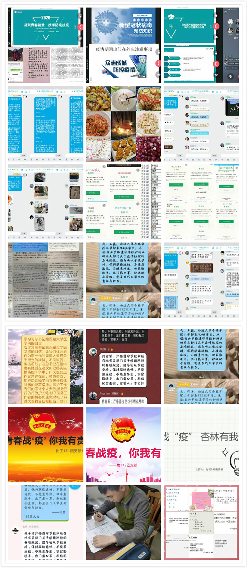 学院各学生班级团支部采取“读”“写”“拍”“画”“创”等多种形式,组织开展精彩纷呈的主题团日活动。“读”如阅读抗击疫情优秀报道和爱国主义名篇佳作,组织开展“聚力战疫,宅家悦读”活动;“写”如撰写抗击疫情主题网文和书法作品,组织开展征文与书法作品征集活动;“拍”如制作疫情防控短视频、微电影,开展“杏林好健康”宅家健身、K歌和短视频接力活动;“画”如绘画和制作动漫、表情包等,开展“逆境携行,你我同心”作品征集评比活动;“创”如编写疫情防控小游戏、小程序等,开展网上调查与志愿服务活动。各项活动的开展,较好起到思想引领、读书修身、寓教于乐,促进德智体美劳全面发展的作用。
