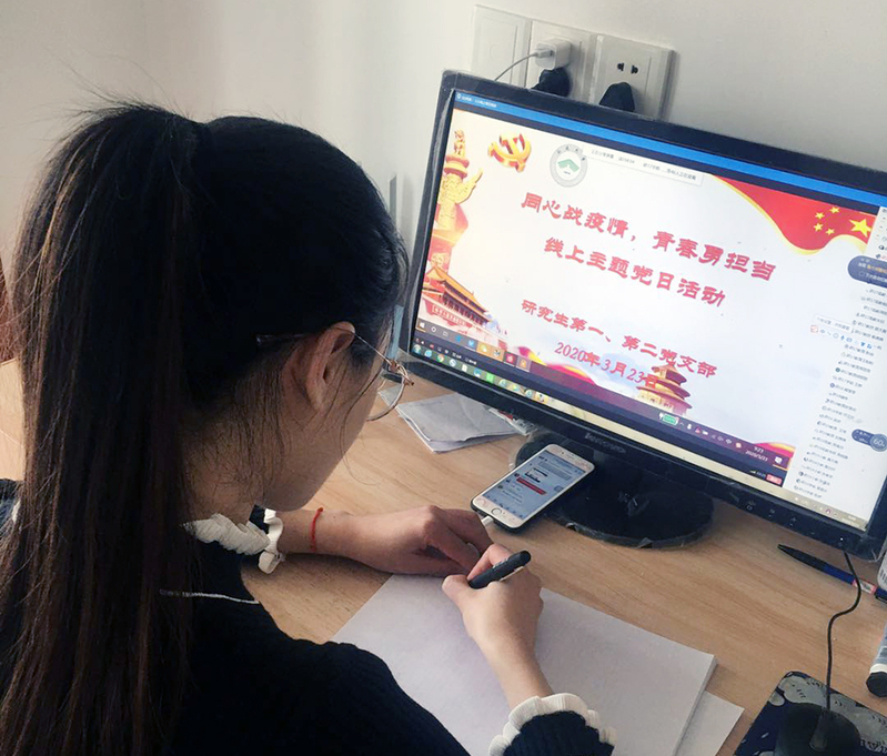 3月23日,教育科学学院56名研究生党员齐聚“云端”,参加研究生第一、第二党支部联合开展的“同心战疫情,青春勇担当”线上主题党日活动。