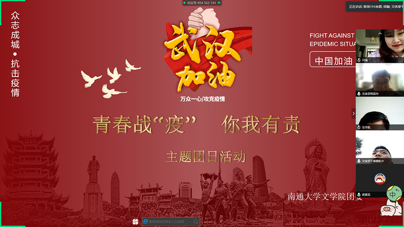 3月22日下午,文学院团委在腾讯会议网络平台组织开展“青春战‘疫’,你我有责”线上主题团日活动。